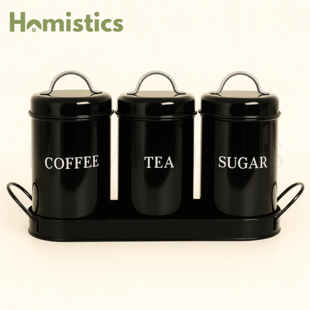 KITCHEN SET - SIMPLE, SOPHISTICATED, FUNCTIONAL - Set of 3 vintage inspired canisters for coffee, sugar, or tea, hand wash only.