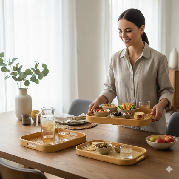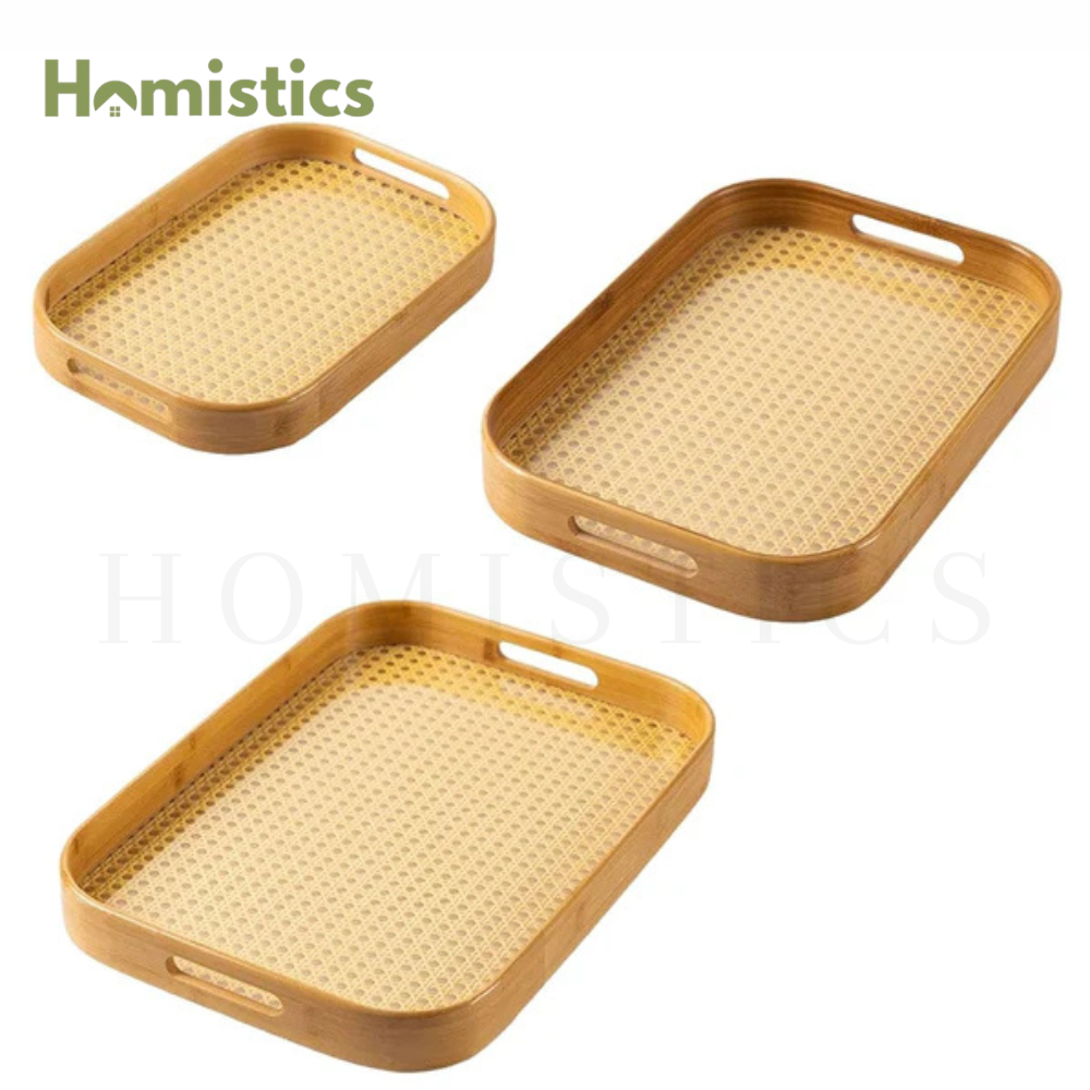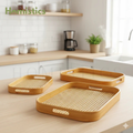Generic Stylish Bamboo Serving Tray with Easy-to-Carry Handles 3 PCS SET